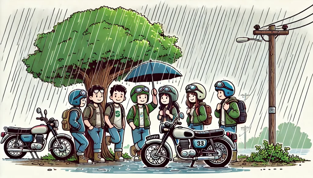 学生時代、友人たちとともにバイクでツーリングに出かけることが楽しみのひとつでした。当時はレインウェアを持っていなかったので、急な雨に降られるとゴミ袋に頭を出す穴を開けてかぶったこともありました。数日間のツーリングに出かけるときは、スーパーで買った透明のカッパを使っていましたが、生地が薄くて少しスピードを出すと風圧で引きちぎれてしまうこともありました。
