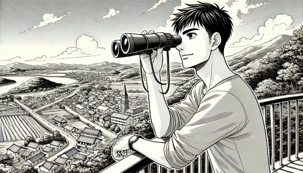 双眼鏡で行先を探しましょう。気になる場所、変わった建物、公園などを見つけたら、実際に行ってみましょう。双眼鏡はただの観察道具ではなく、新たな冒険の道を切り開くツールなのです。僕にとって、双眼鏡は「見るもの」ではなく「探すもの」。新しい発見と冒険を求めて、双眼鏡を手に取ってみてください。